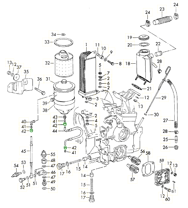 - High-quality Porsche oil filter housings and sealing components.
