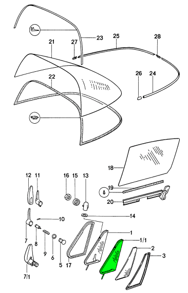 Window glazing lateral 911 1974-77 COUPE 805-05