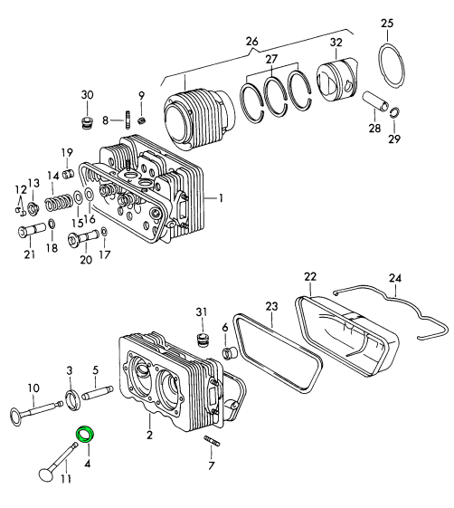 cylinder head, cylinder with piston 911 1972 ONWARDS 103-05