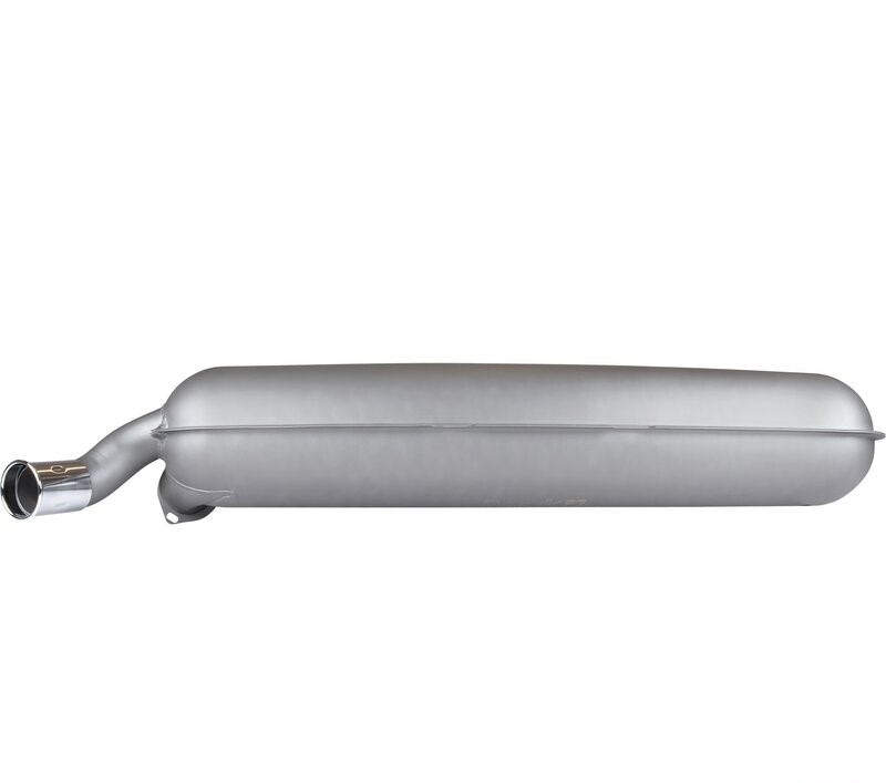 Available in original styling: Typically matt grey shade with heat-resistant finish. Produced by a supplier with a proven reputation acquired over many decades, the exhaust silencer also bears the Porsche logo.