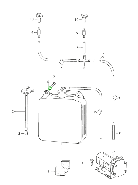 windscreen washer system for 911 /S F 030 2695 >> 030 8454, F >> 050 0700 and 912 F 035 1293 >>, F 045 1374 >>. For cars upto 1967. 904-20