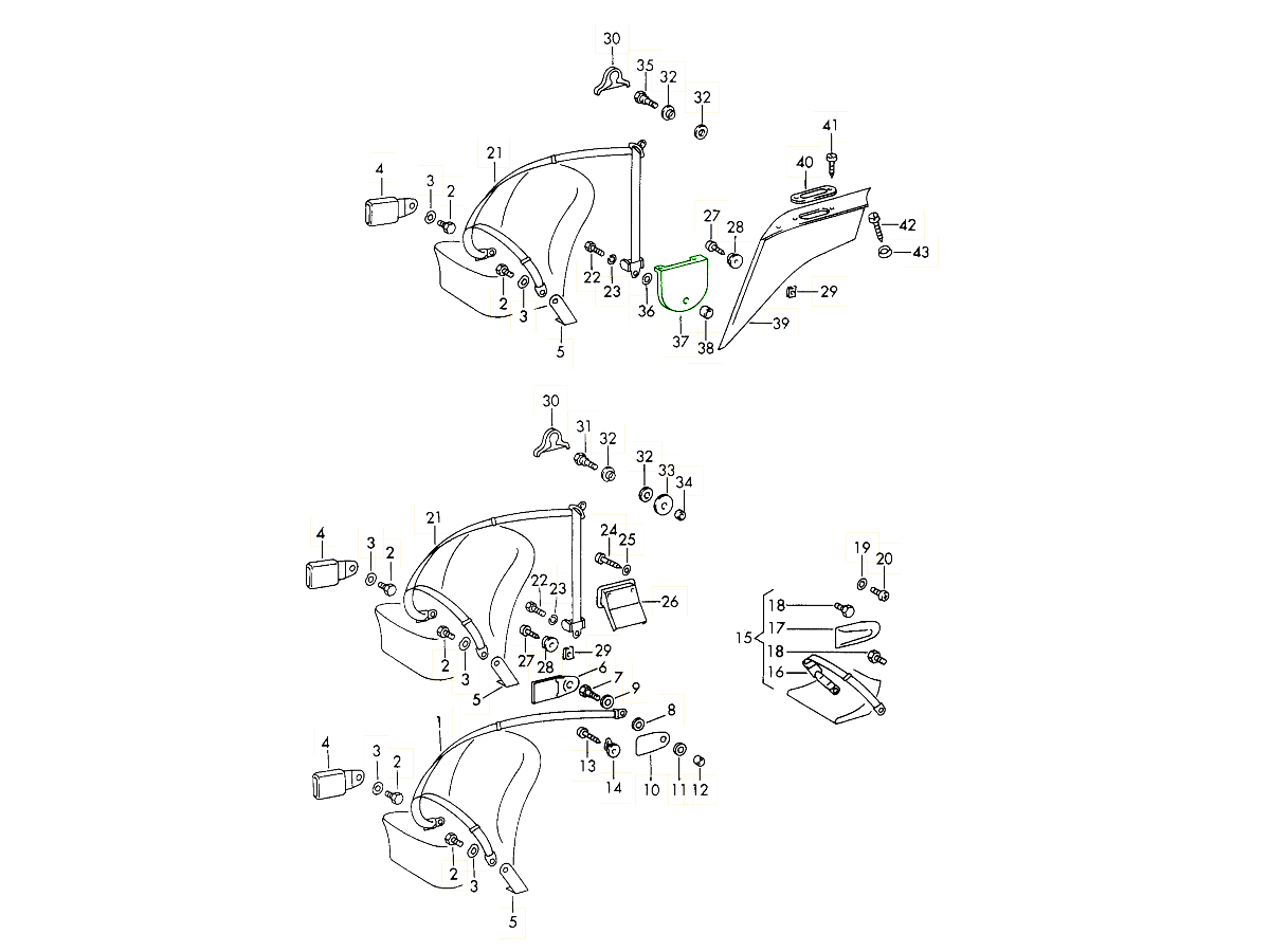 Front seat belts are essential for both safety and driving comfort, ensuring driver and passenger protection in every Porsche. Designed to restrain occupants effectively during braking or collision, a high-quality seat belt system also enhances driving confidence and compliance with modern safety standards. Whether your Porsche is a classic restoration or a high-performance model, maintaining reliable seat belts is critical for safety, performance, and authenticity.