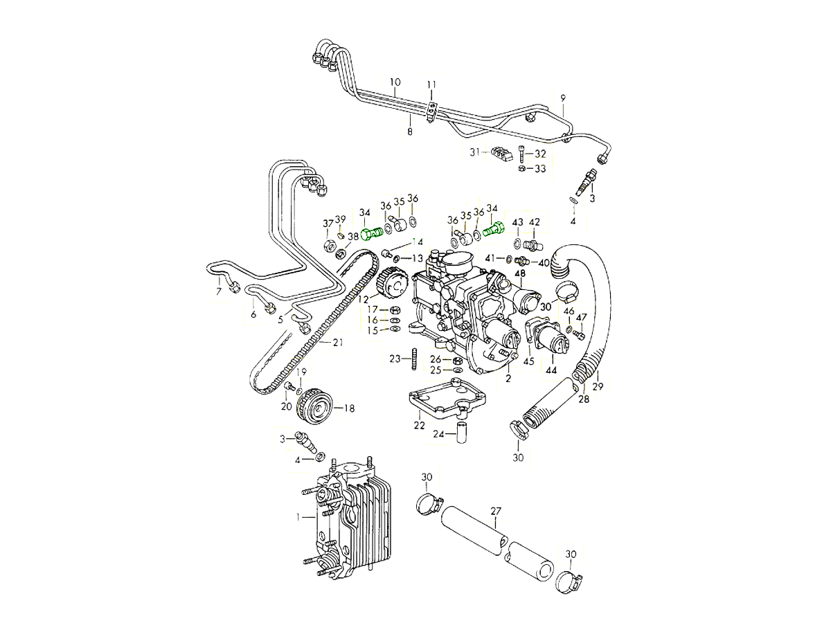 injection system cylinder head and injection pump 911 E/S UPTO 1971 and 911 911 T-E/E/S, CARRERA 2.7 1972 ONWARDS 107-20