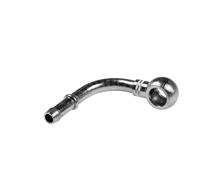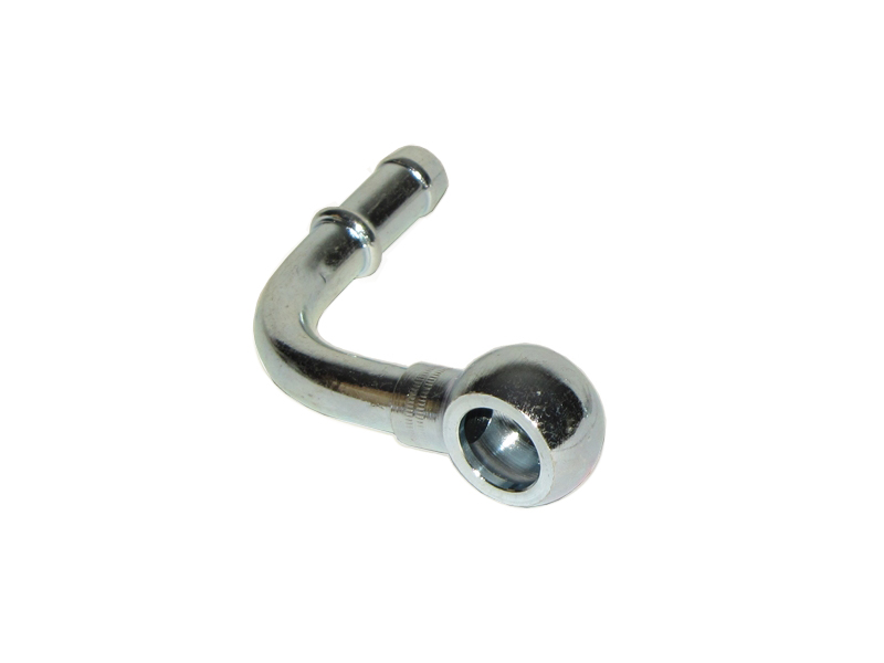 M14 Banjo to M10 90° Hose barb, Secure using either hose clamp or crimp in place with a ferrule. Can be used on fuel or oil applications. Used at the the fuel Tank with MFI Cars in conjunction with an M14 Banjo Bolt.
