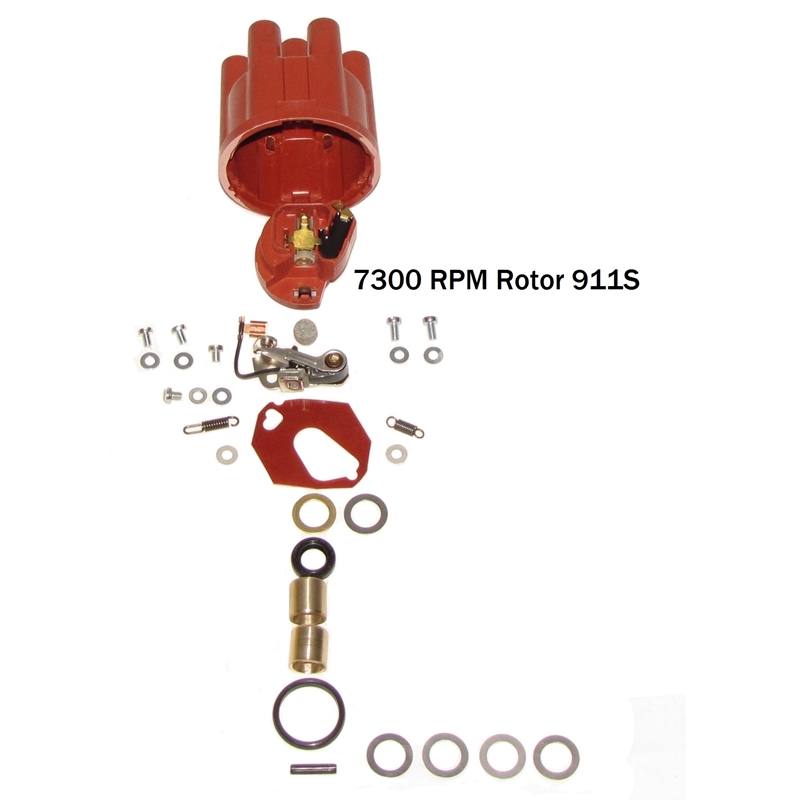This is a kit containing a new sliding plate, weight washers, various size shims to get the up and down play to .01 to .05 of a mm, a brass top shim, new advance primary and secondary spring with a new shaft pin and O-ring. Fresh hardware, cap, 6500 RPM rotor, Points and wicking felt.