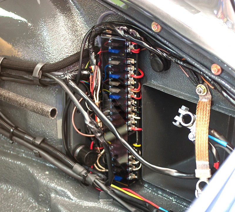 911-FPE fuse panel fits all 'long hood' 911s 1969 - 1973. It requires no serious modifications to the original wiring loom or metalwork and is 'plug and play'.