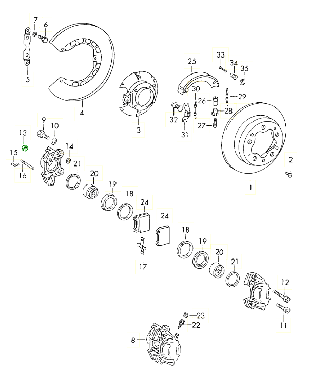 Front calipers fit with regular 911 hubs and use early type 930 floating rotors with our hat kit #2190005 (floating) or #2190010 (fixed), or late 930 hubs with late 930 fixed rotors.