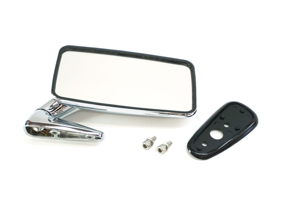 Chrome-plated old school mirror ( 911 style 1965-1967) equipped with a specially made aluminum adapter for mounting it on the original windshield mirror base.