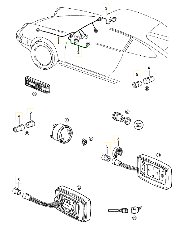 wiring harnesses: luggage compartment, steering lock 911 1978-83 902-12