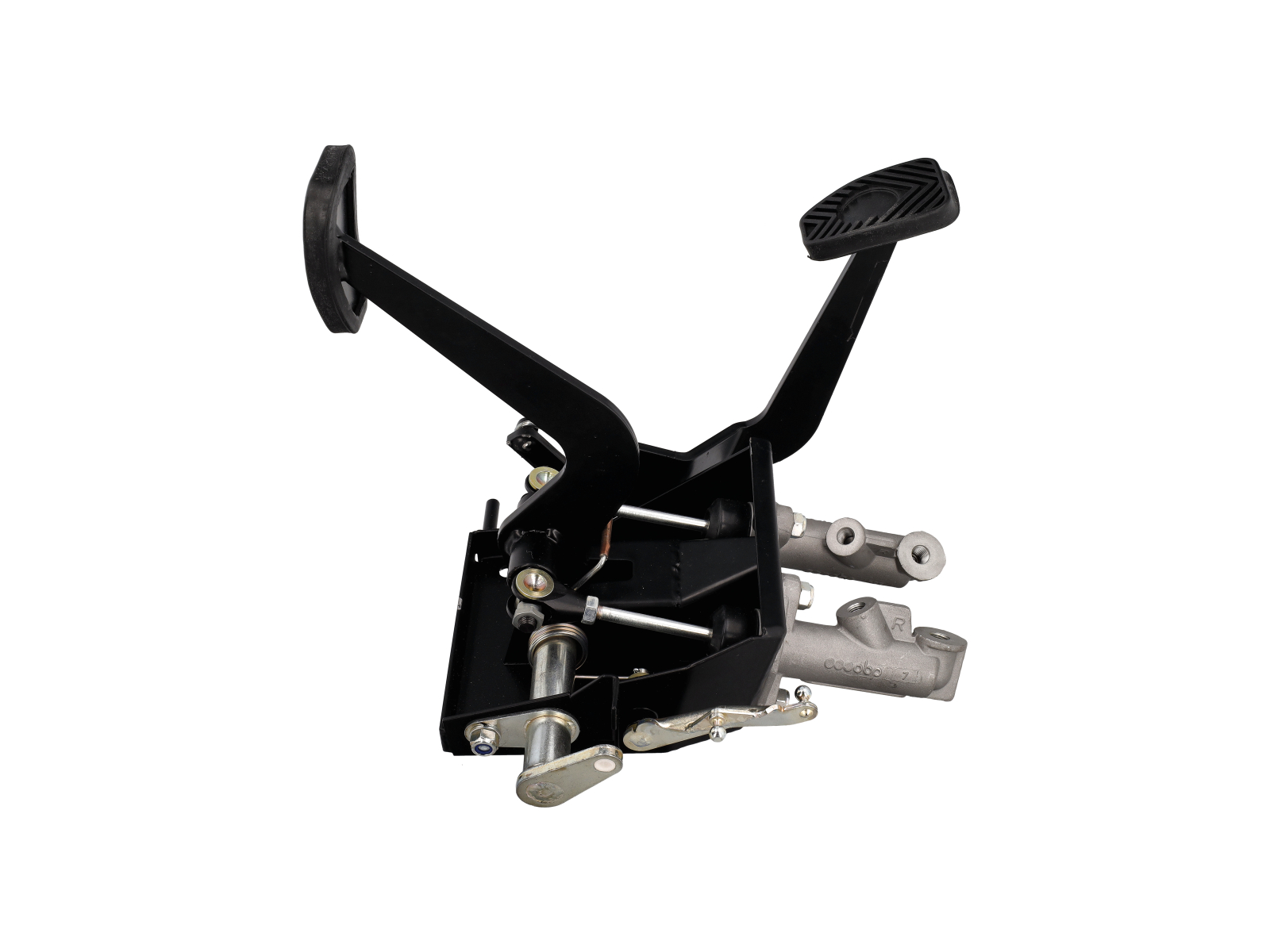 The balance beam systems has two brake master cylinders mounted in parallel on a bracket that allows precise adjustment between the front and rear axles.