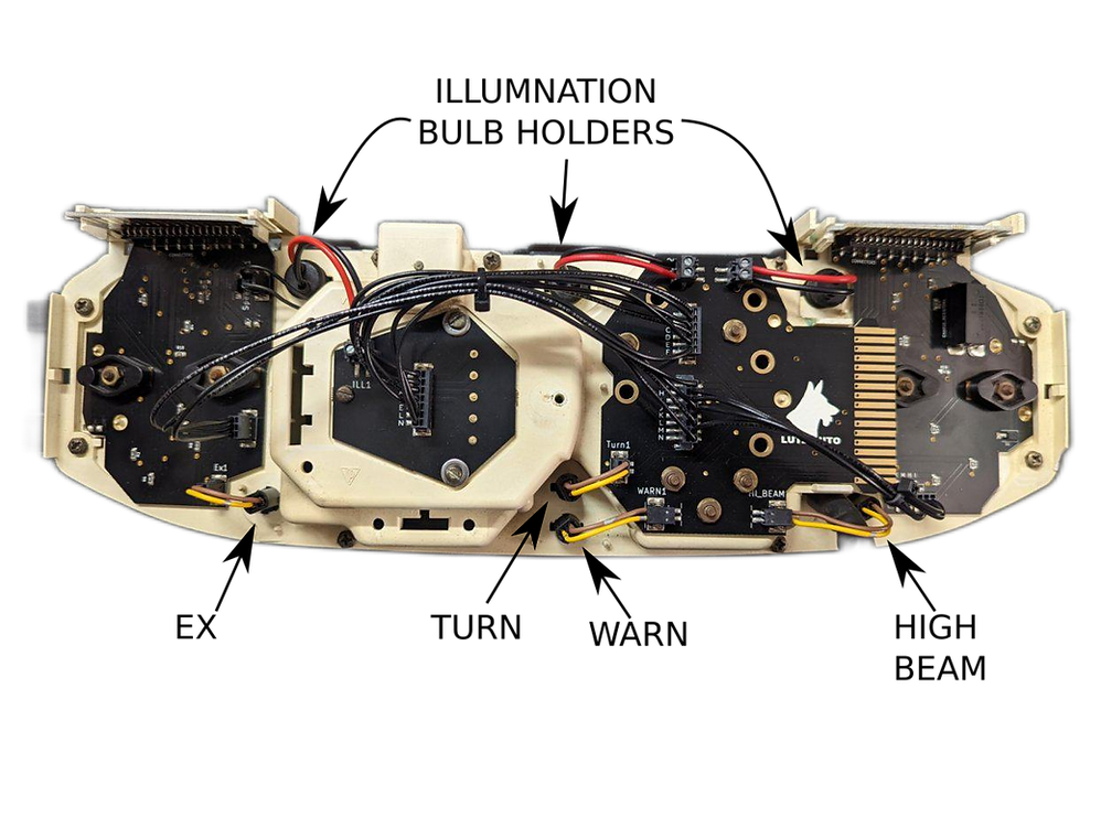 From the factory, these clusters relied on a flexible printed circuit foil mounted behind the gauges. Over time, heat exposure, age-related material degradation, and repeated handling cause the original foil to become brittle, crack, or lose conductivity. This results in erratic gauges, failed warning lights, flickering illumination, and intermittent or total cluster malfunction. Repairing the original flex circuit is rarely reliable or long-lasting.