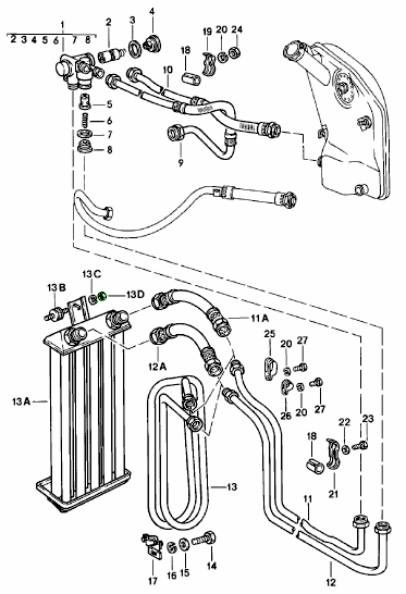 Located between the oil cooler housing and the chassis or engine bracket, these buffers play a vital role in maintaining correct alignment and reducing vibration throughout the cooling system. Over time, exposure to heat, oil, and vibration can cause the rubber to harden or crack. Replacing with genuine Porsche parts restores factory stability, vibration isolation, and long-term reliability.