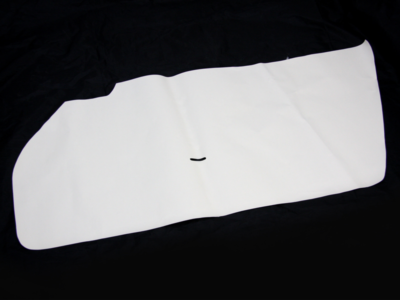 We start with a water resistant fiberboard specifically designed for door panels and bond to it a thin layer of sound/vibration deadening foam. This makes for a quiet ride.
