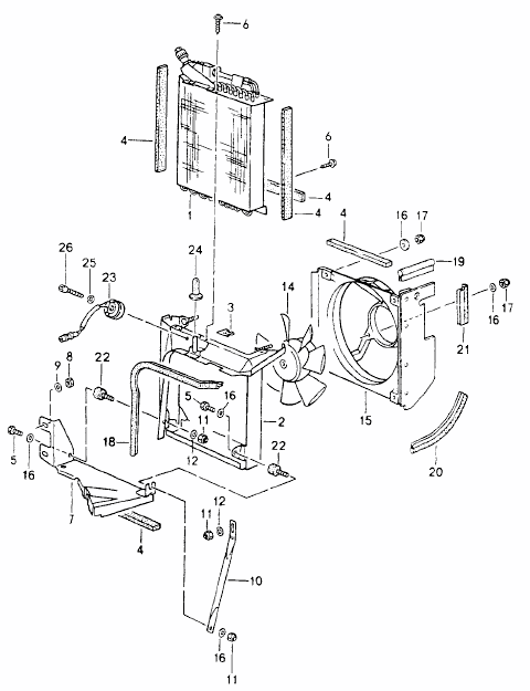 - The fan circulates air across the radiator and A/C condenser to regulate temperature.