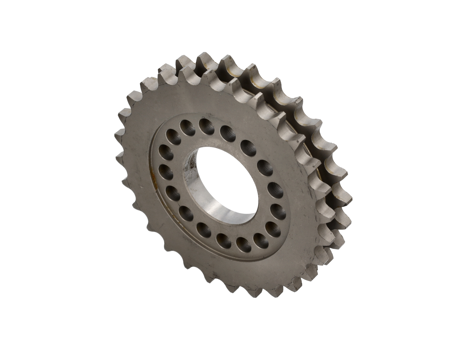 This sprocket (gear) is part of the timing / camshaft drive system, engaging with the timing chain (or drive chain) to convert crankshaft rotational motion into synchronized camshaft motion. It ensures that the camshafts open and close valves at the correct moments relative to piston position, essential for proper combustion, engine efficiency, and emissions. Accurate tooth profile, hardness, and alignment are crucial—improperly manufactured or worn sprockets can lead to timing drift, noise, chain jump, or catastrophic engine damage.