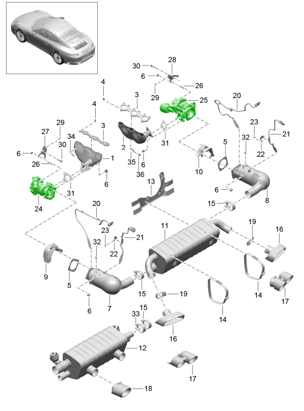 Exhaust system 991.2 Carrera 2017-19 202-000