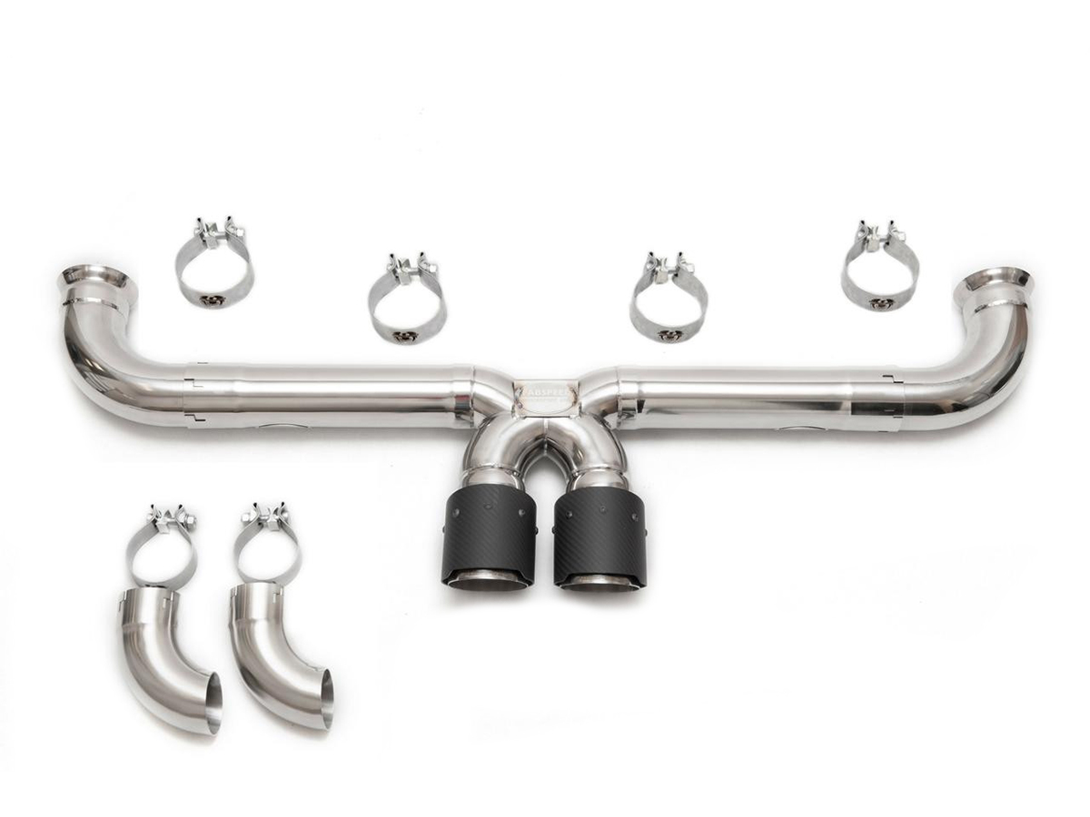 • Saves over 54lbs (24kg) from the rear of the 991 GT3 which improves handling and acceleration by replacing the bulky factory center muffler and side mufflers