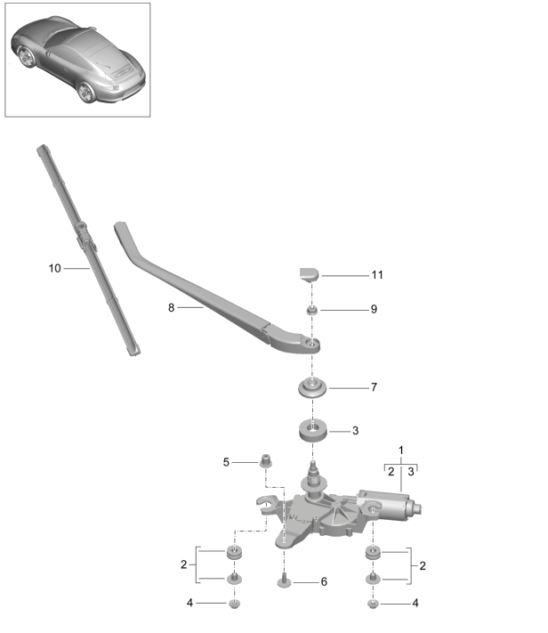 This will fit Porsche 911 991 with the wiper motor in the back window.