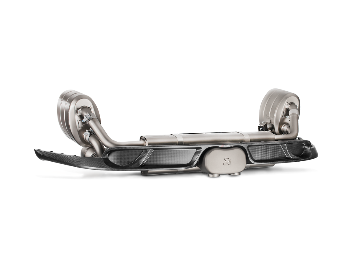 Tuned quarter-length resonators in addition to the catalytic converters ensure the sound quality and the absence of any distortion or unwanted frequencies, creating a unique sound experience. The combination of an Akrapovič Slip-On Race Line (Titanium) and Evolution Header Set (Titanium), developed for use on closed-course competition circuits only, provides increases of 16.6 kW (22.6 hp) in power at 4,550 rpm and 35.2 Nm in torque at 4,500 rpm, when tested on the Akrapovič dyno against a Porsche 911 GT3 (992) with a standard stock exhaust.