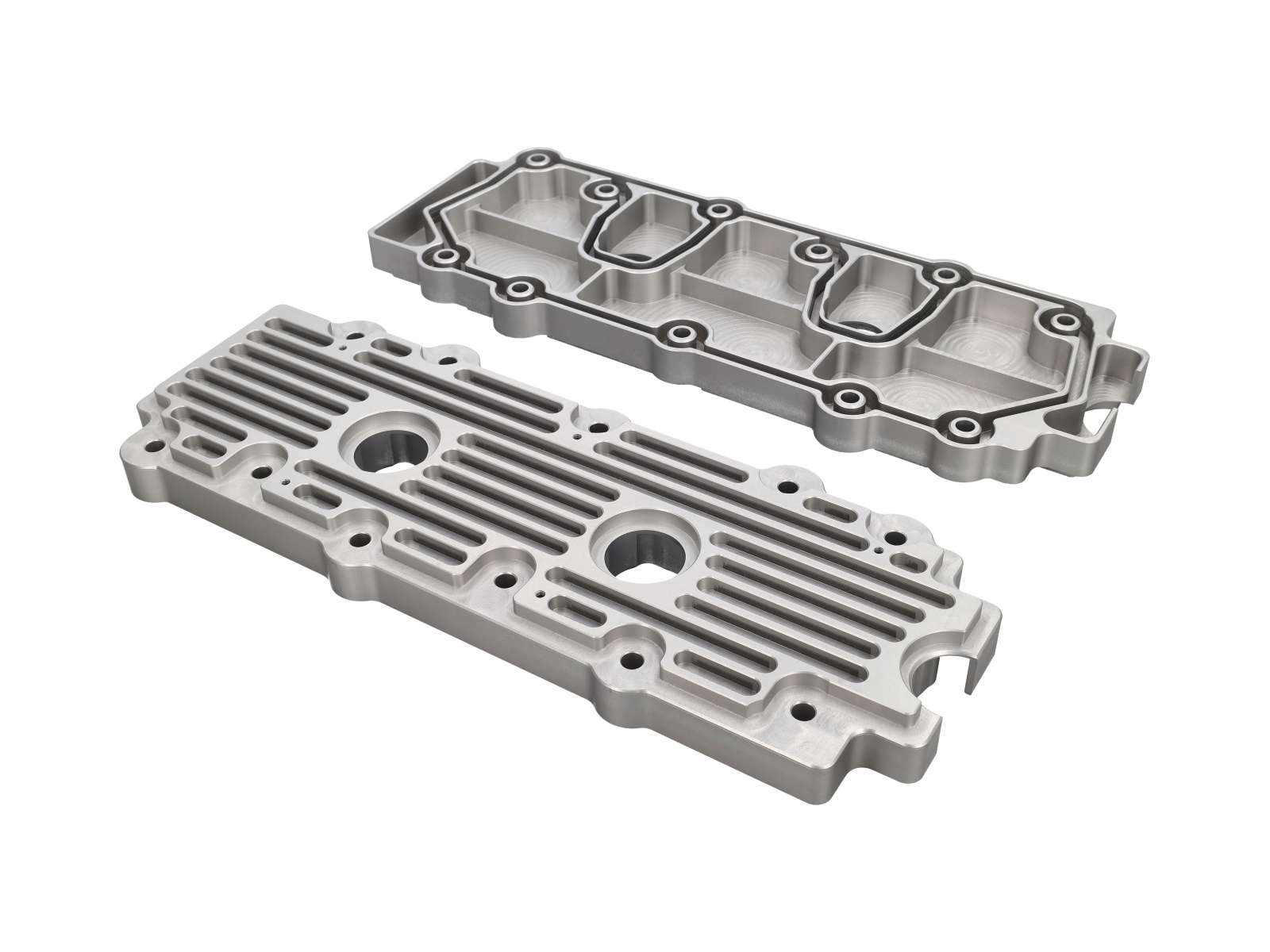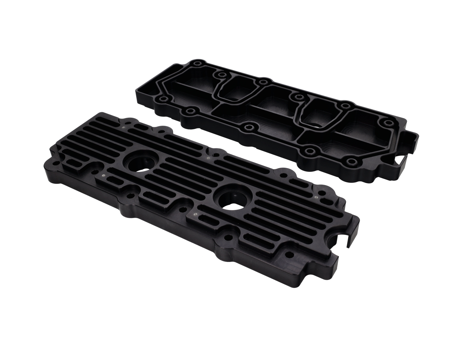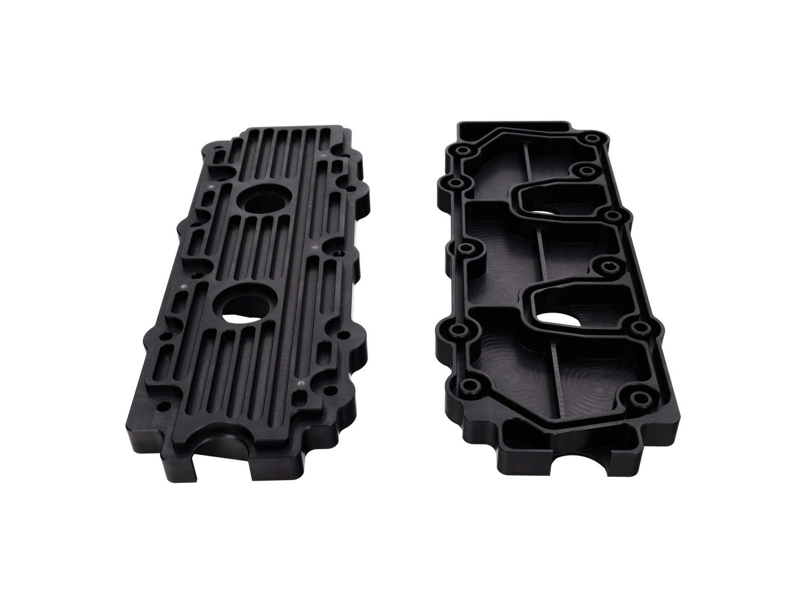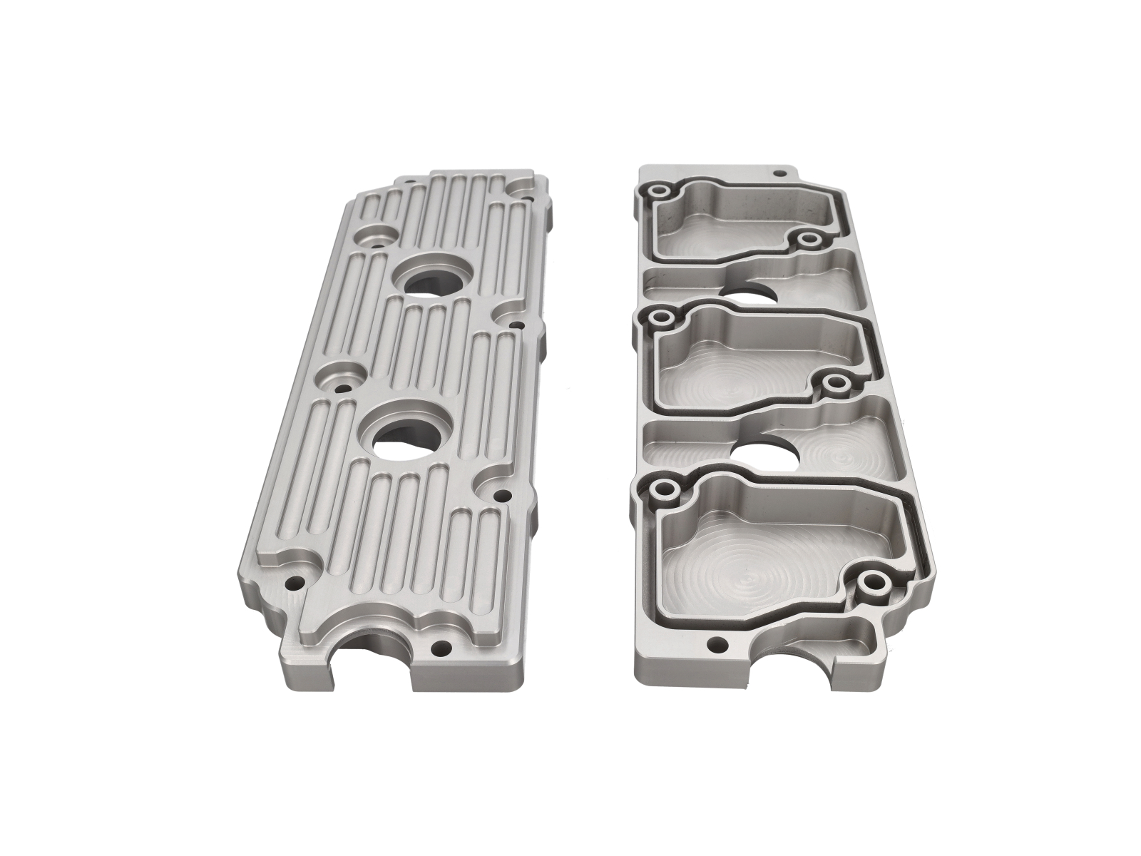 Now a permanent solution to leak-prone Porsche 993 factory plastic lower or upper valve covers. Over time, engine heat cycles cause the plastic valve covers to separate around the aluminium bolt sleeves causing an oil leak. Our replacement racing 993 lower or upper valve covers are precision-machined from aircraft-grade aluminium billet. These covers permanently correct the problem and help your engine run cooler by dissipating engine heat more efficiently due to their aluminium composition and finned surfaces.