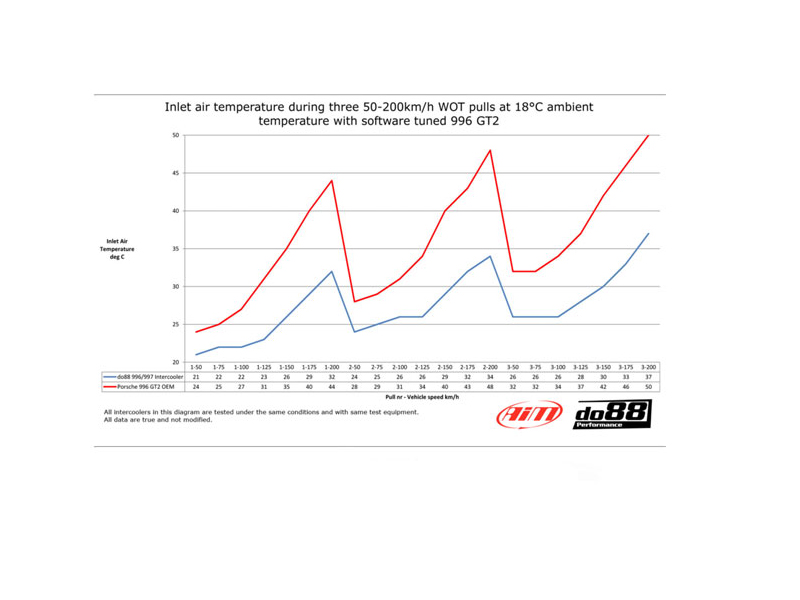 • Lower post Intercooler Air Temperature at same conditions: OEM 50°C (122°F), do88 34°C (93°F)