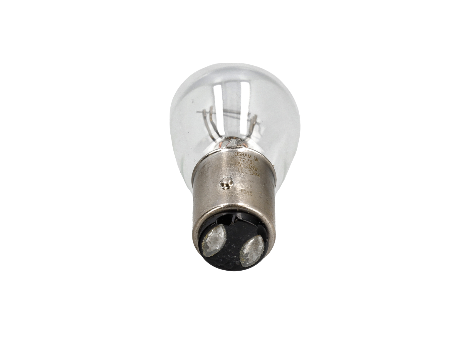 The Brake/Tail Light Bulb – 12V 21/4W, Offset Pins is a Osram dual-filament bulb designed for rear brake and tail light applications. Operating at 12 volts with a 21/4 watt configuration, this bulb provides two levels of illumination — lower intensity for tail lights and higher intensity for brake lights.