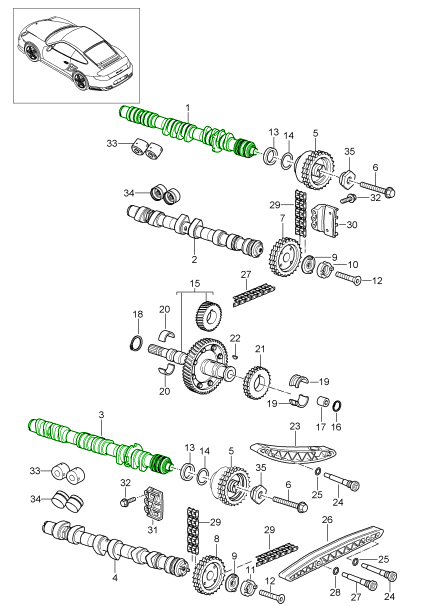 Camshaft / Hydraulic tappet / Camshaft adjuster unit - A170 - 997.2 Turbo 3.8L 2010-13 103-010