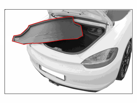 Tailored protective liner with 'PORSCHE' logo and Boxster silhouette. Waterproof and easy to clean. With integral carry handles.