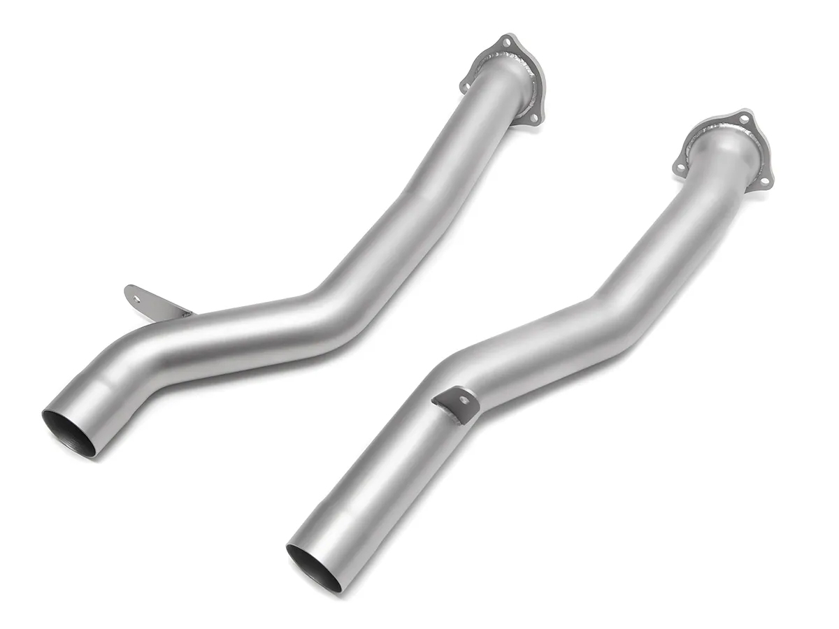 Replaces the restrictive factory catalytic converters with much less restrictive straight-through pipes for maximum flow and performance.
