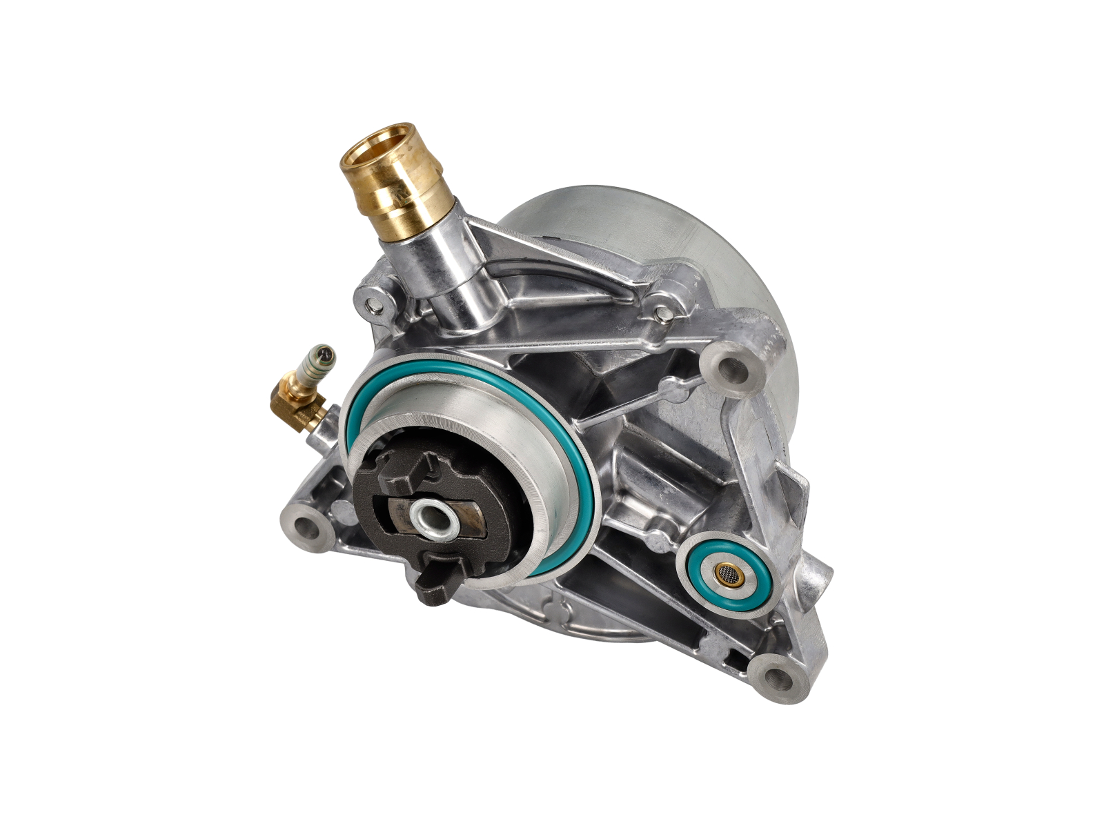 The vacuum pump creates negative pressure within the engine system to assist various mechanical and electronic functions.