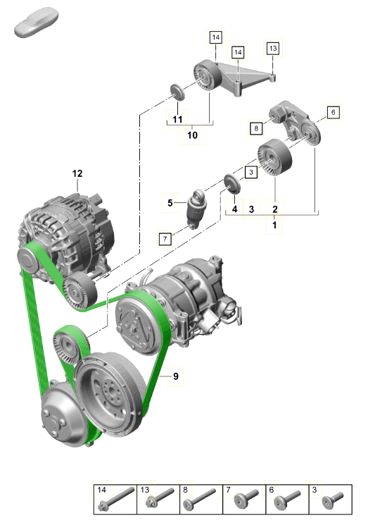 • Drives essential accessories such as the alternator, water pump, power steering pump, and air conditioning compressor.