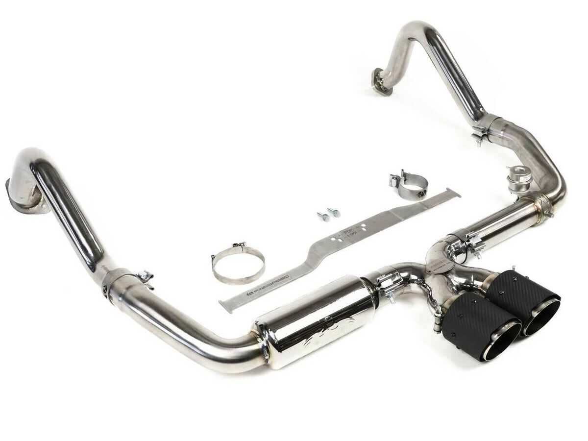 At the axle-back solution only the rear muffler is replaced by a REMUS sport exhaust. The REMUS sport exhaust for the Porsche Cayman 718 type 982 offers a significant increase in performance and torque due to reduction of back pressure and flow optimization. Less weight and the well-known sonorous REMUS sound are additional features, which distinguish the REMUS sport exhaust from the stock exhaust. REMUS axle-back solutions are available for a wide range of cars.