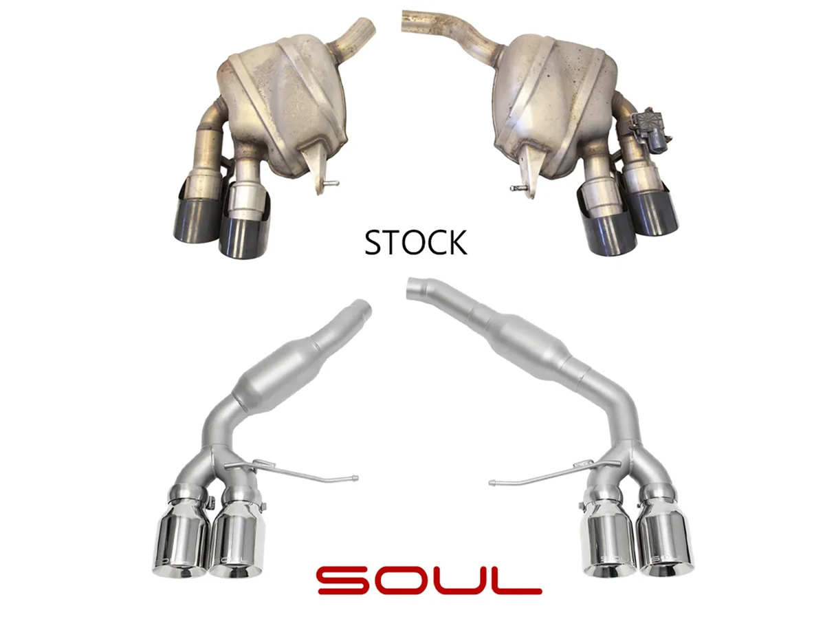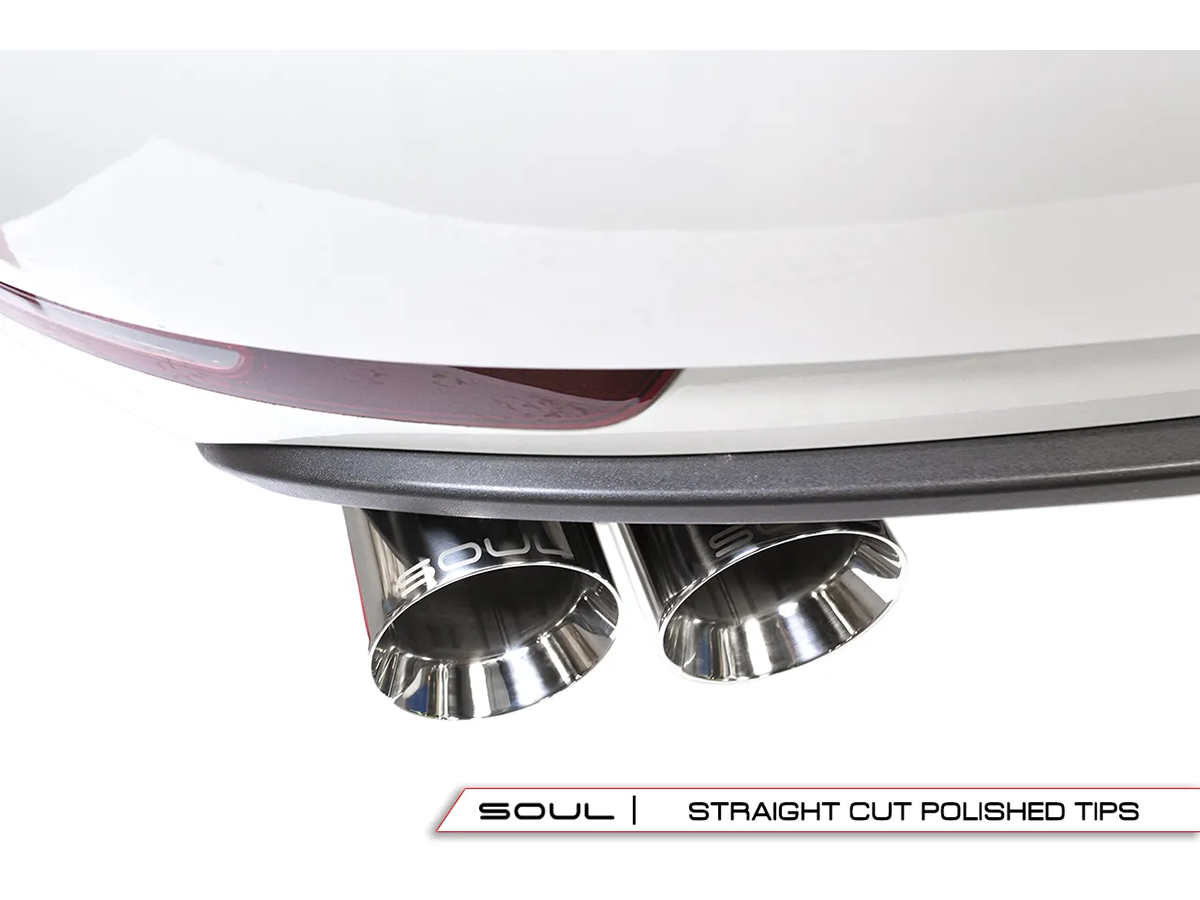 SOUL’s mandrel bent 2.5″ rear system offers a refined increase in shift barks, burble, and engine tone while minimizing drone with high flow race resonators.