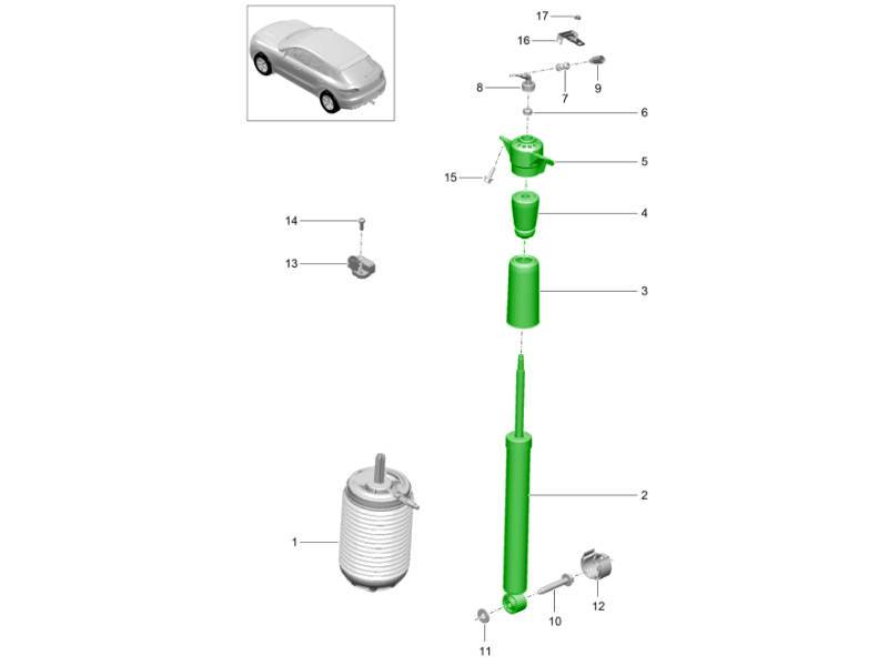 Rear shock absorbers for Porsche Active Suspension Management (PASM) are sophisticated components that combine hydraulic damping with electronic control for adaptive performance. By automatically adjusting damping levels based on road conditions, speed, and driving mode, PASM rear shocks deliver exceptional comfort and agility — ensuring your Porsche maintains perfect composure and balance.