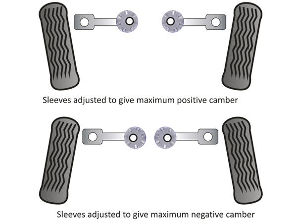 Provides on-car adjustment of the vehicles camber angles, with a 1.5 degree range of adjustment. For a non adjustable bush use PFF3-203.