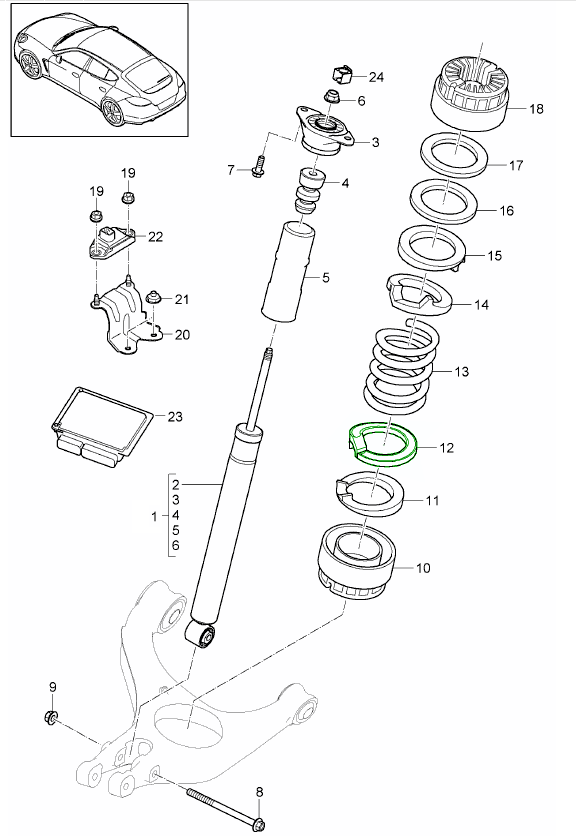 Suspension / Shock absorber strut (PR:475, PASM) Panamera 970 (G1) 2010-16 402-000