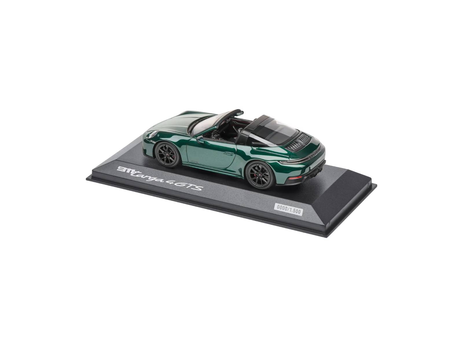 - Made from high-quality die-cast metal, this 1:18 scale model replicates every curve, vent, and design cue of the real 911 Targa 4 GTS (992) with remarkable accuracy. From the Jet Black Metallic bodywork to the Satin Platinum accents and Targa bar, every detail reflects Porsche’s obsession with precision.