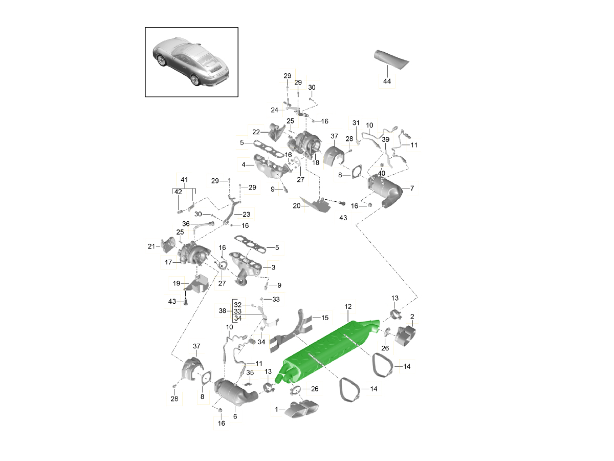 中央排气消声器/消音器。保时捷 9YB Cayenne turbo E-Hybrid GT Coupe - 9Y3253088F