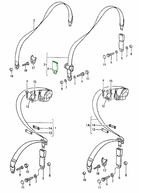 Rear seat belt, Black. Porsche 955 Cayenne >>2005 - 95580305304HCP