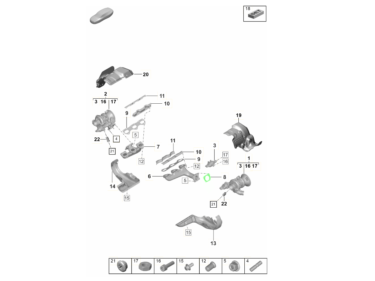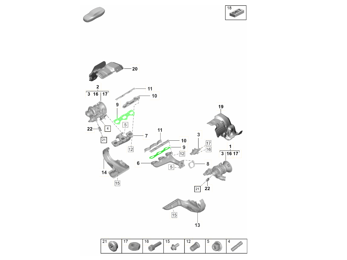涡轮增压器至排气管垫片。保时捷 9YA Cayenne / 971 Panamera / 95B.2 Macan - 9A725323210