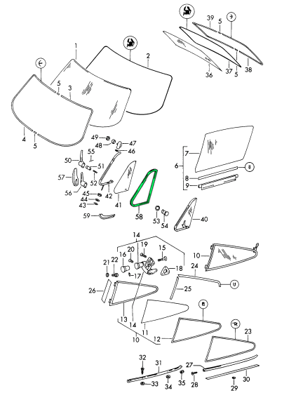 window glazing 911 TARGA / CABRIO 1987-89 805-05