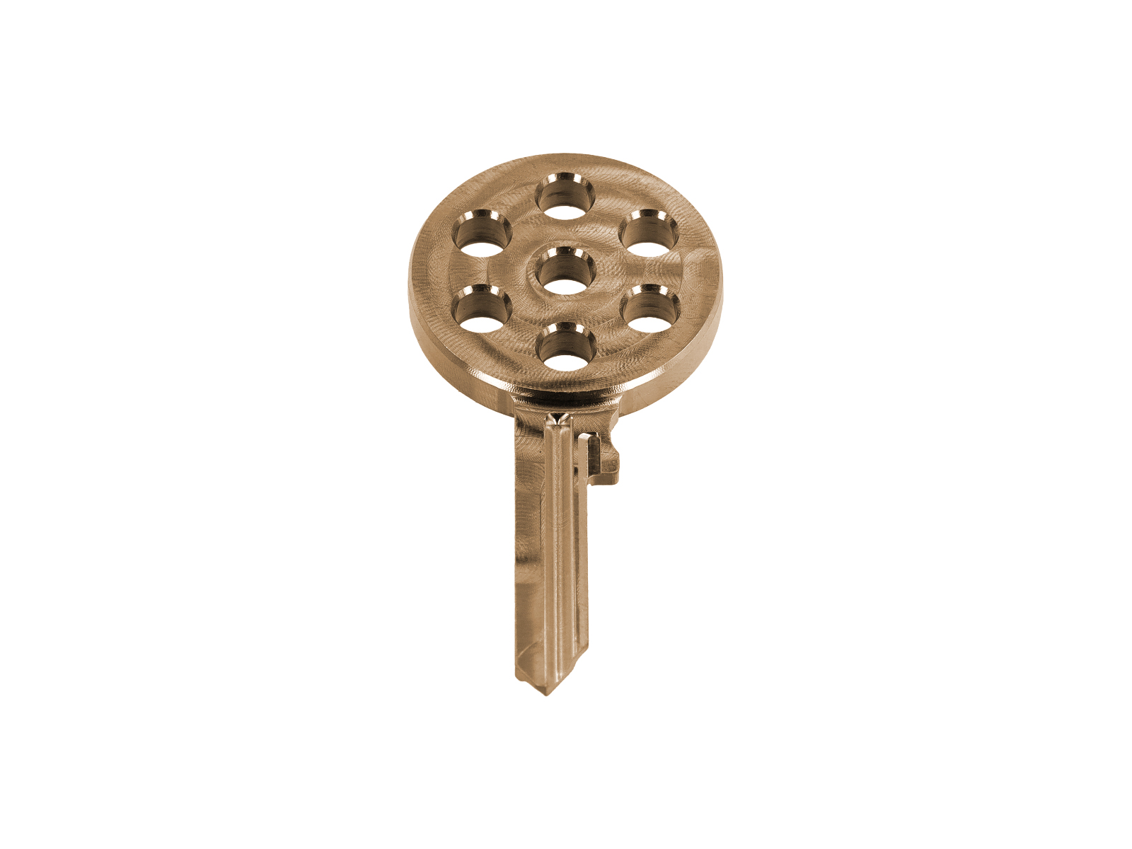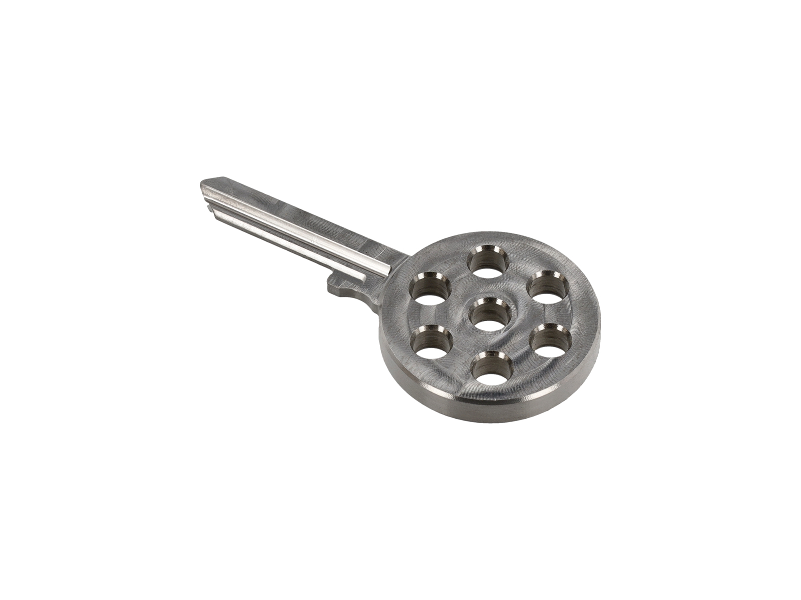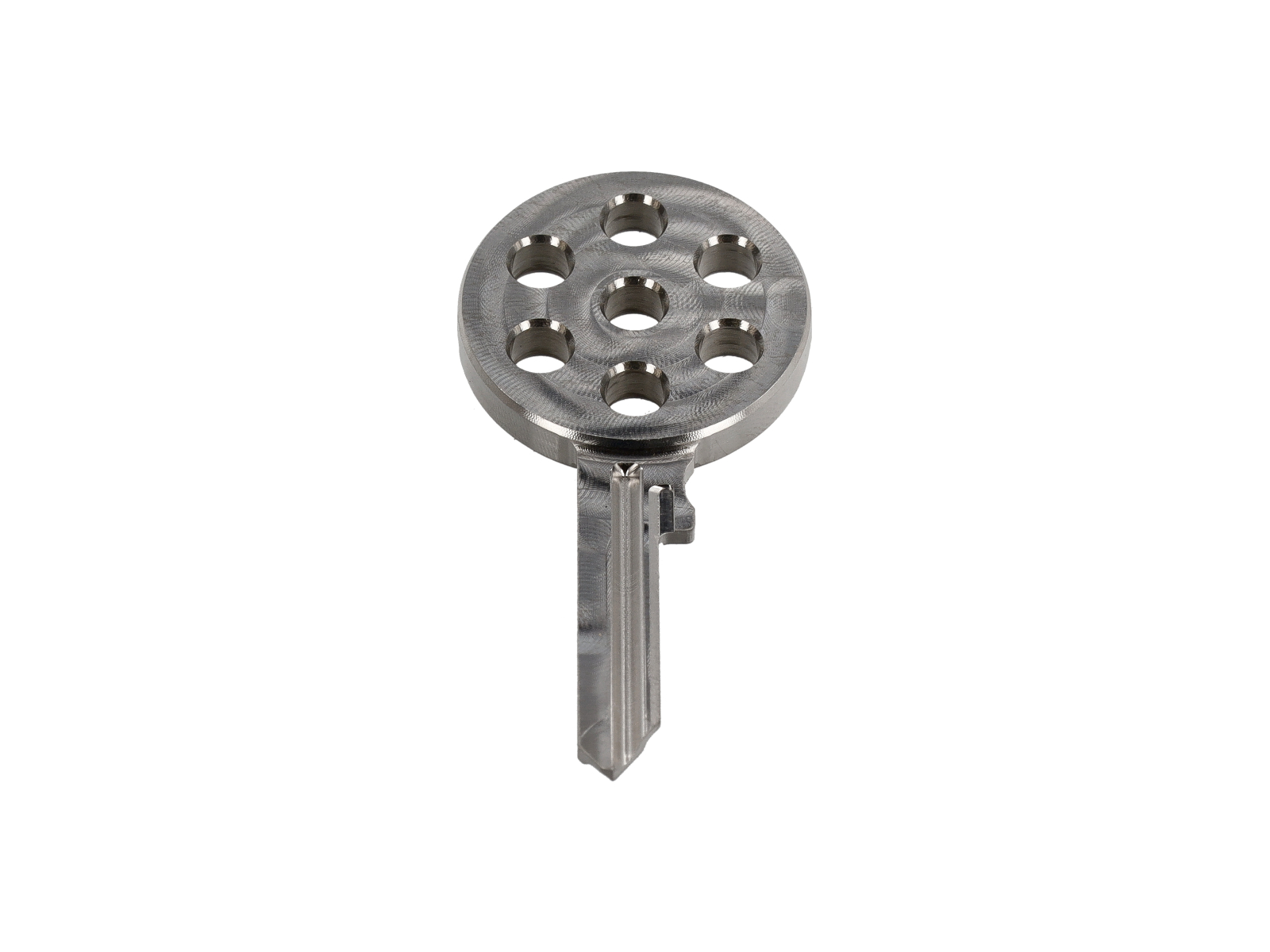 这些钥匙坯由 303 不锈钢棒加工而成,与工厂钥匙所用的材料相同