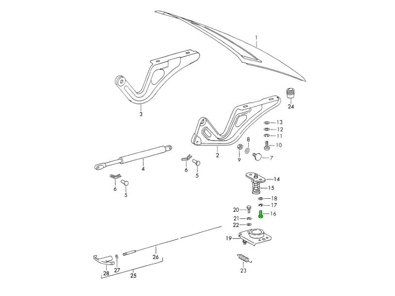 这款用于盖锁的 M6 x 16 六角螺栓是符合原厂规格的紧固螺栓,专为固定保时捷 911 车型的盖锁/闩锁机构而设计。该 M6 螺栓长度为 16 毫米,用于安装或固定盖锁系统的组件,确保正确对齐、牢固紧固和可靠的锁定操作。