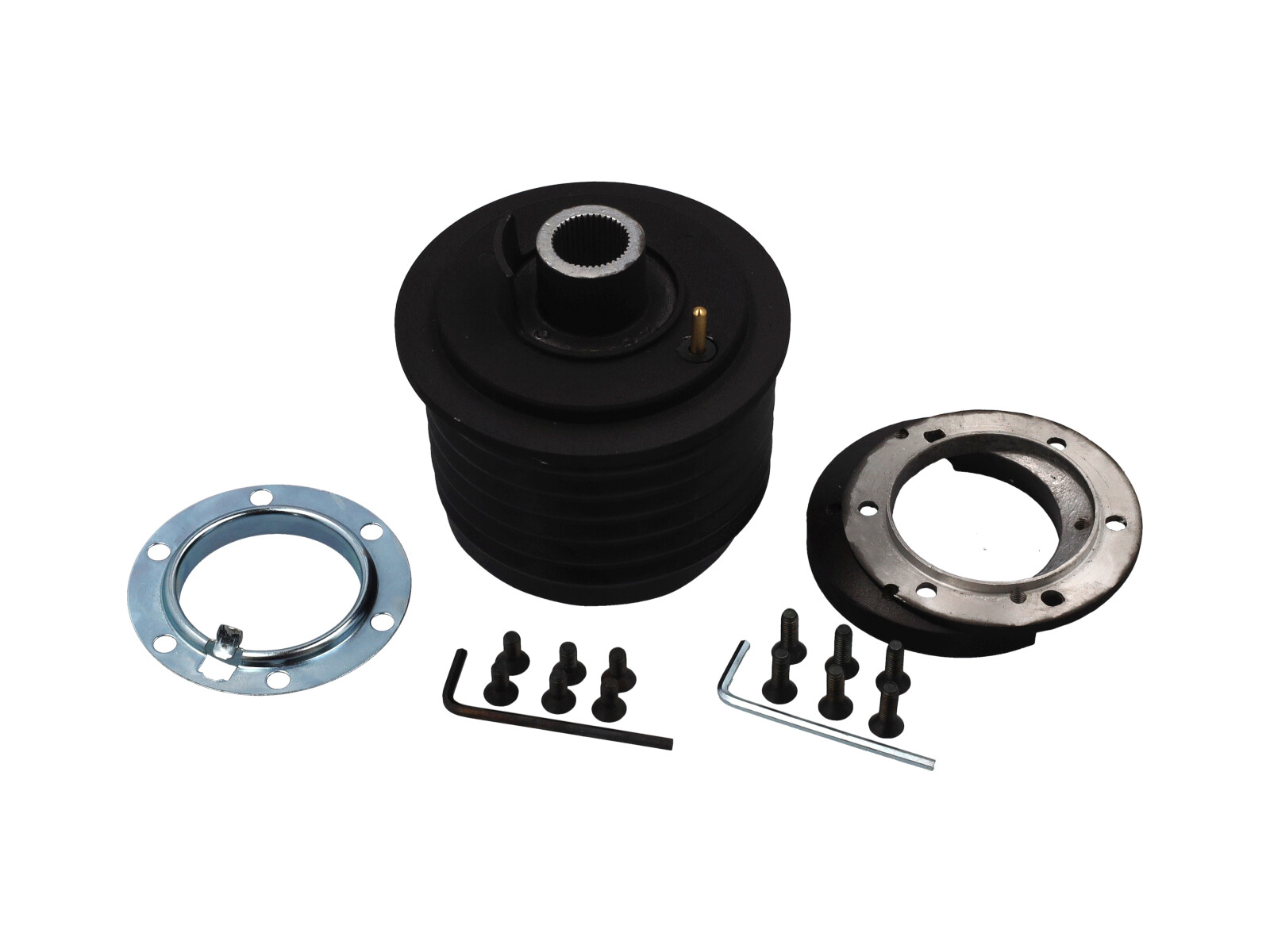 它配备 5 个全新的安装螺栓,用于将适配器连接到 BOSS KIT(底部螺栓螺纹未使用)和 3 个全新的安装螺栓,用于将 ATIWE 方向盘连接到 BOSS KIT。