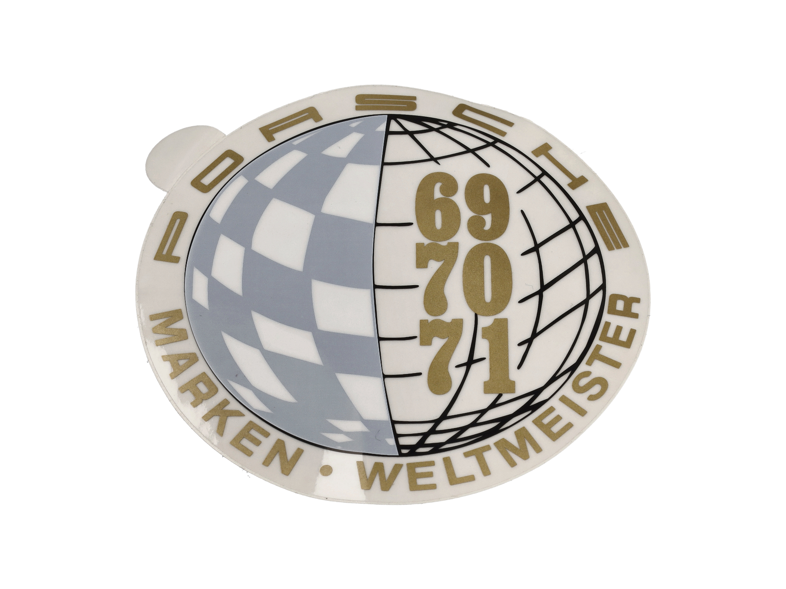 “Markenweltmeister 69”(69 款汽车世界冠军)贴纸(从内部粘贴),直径为 100 毫米。