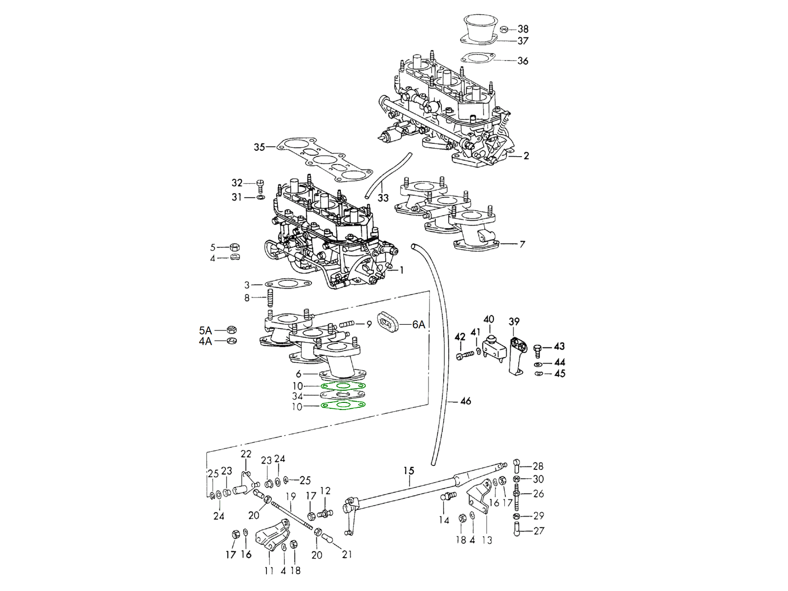 carburettor system with SOLEX-40 PII-4 for 912 1965-69 107-10