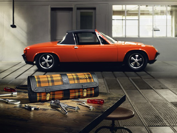 An orange plaid fabric (tartan) characterises the outer appearance of the new bag. The look takes up the design of the 914 seat covers. The tool bag also has a stamped Porsche Crest on the front, as it once was used on the horn button of the six-cylinder version 914/6. Like all tool bags that Porsche Classic has reissued, the version for the 914 also has a high-quality tool set. Each part has its intended place.