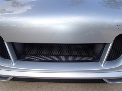 One of Porsche's biggest design flaws on the water cooled cars is the bumper air intakes. With the current design, the radiators are completely exposed and become magnets for road debris, leaves, and rocks. The fins on the radiator will quickly become damaged or plugged translating into big dollar repairs. The only way to stop the inevitable is to install a Rennline Radiator Protection Grill Kit.