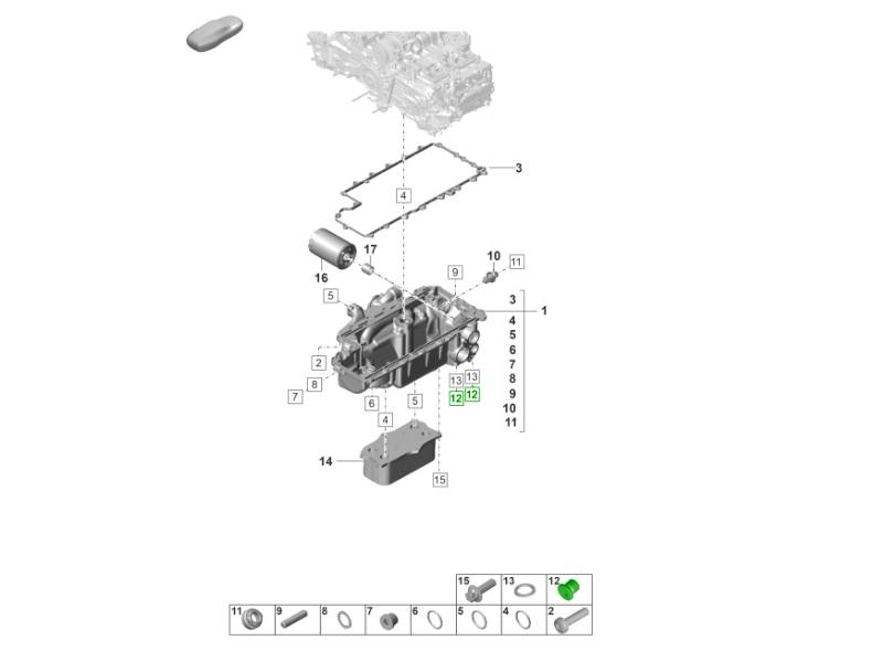发动机油底壳,也称为油底壳,是保时捷润滑系统的重要组成部分。它是储存、收集和循环发动机机油的主要容器。油底壳确保机油持续供应到所有关键运动部件,从而保持冷却、润滑和发动机寿命,尤其是在高性能驾驶期间。