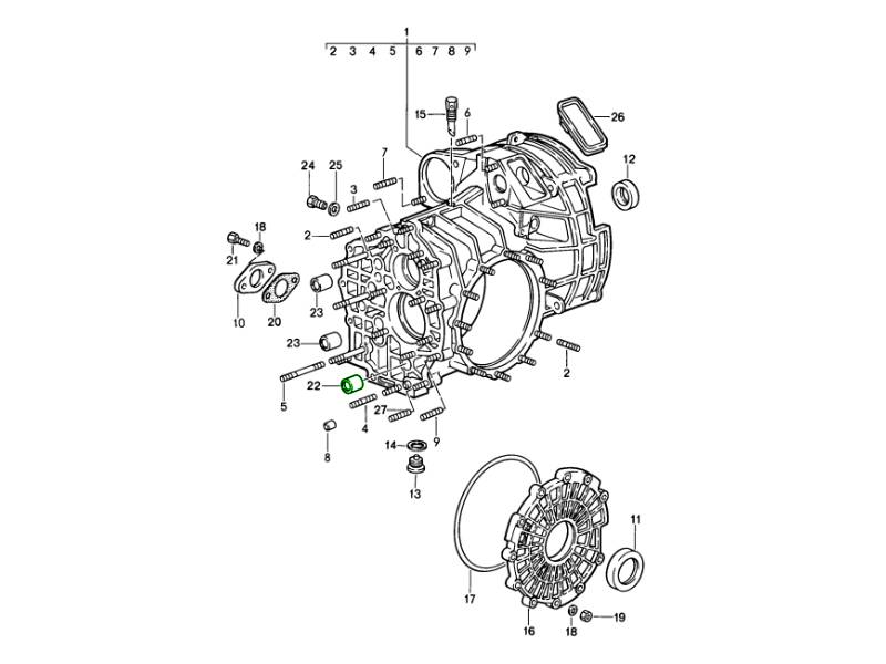 gear housing transmission cover for 993 CARRERA G50.20/21, 993 CARRERA RS G50.31/33, 993 CARRERA 4 G64.20/21 (1995 onwards) and 993 TURBO G64.51 1994-98 302-05